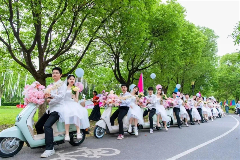曾瑞和邓宇璇是参加这次集体婚礼的一对新人。曾瑞说:“仪式中的骑电动车接亲、集体宣誓等环节,让我们印象深刻。作为新时代的青年,我们要做婚事新办、喜事简办的倡导者、传播者和践行者,并倡导移风易俗,传播婚俗新风。”