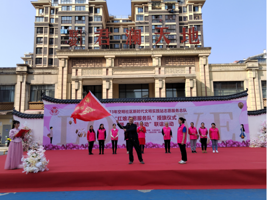 2023年3月4日,空明社区新时代文明实践站在七星党建主题广场开展“红娘志愿服务队”授旗仪式暨“缘随心动”联谊活动。(空明社区供图)