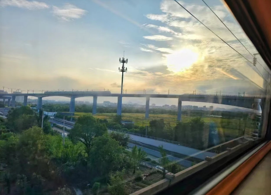 坐在列车上,与另一列高铁隔空交汇,开往各自的幸福终点。