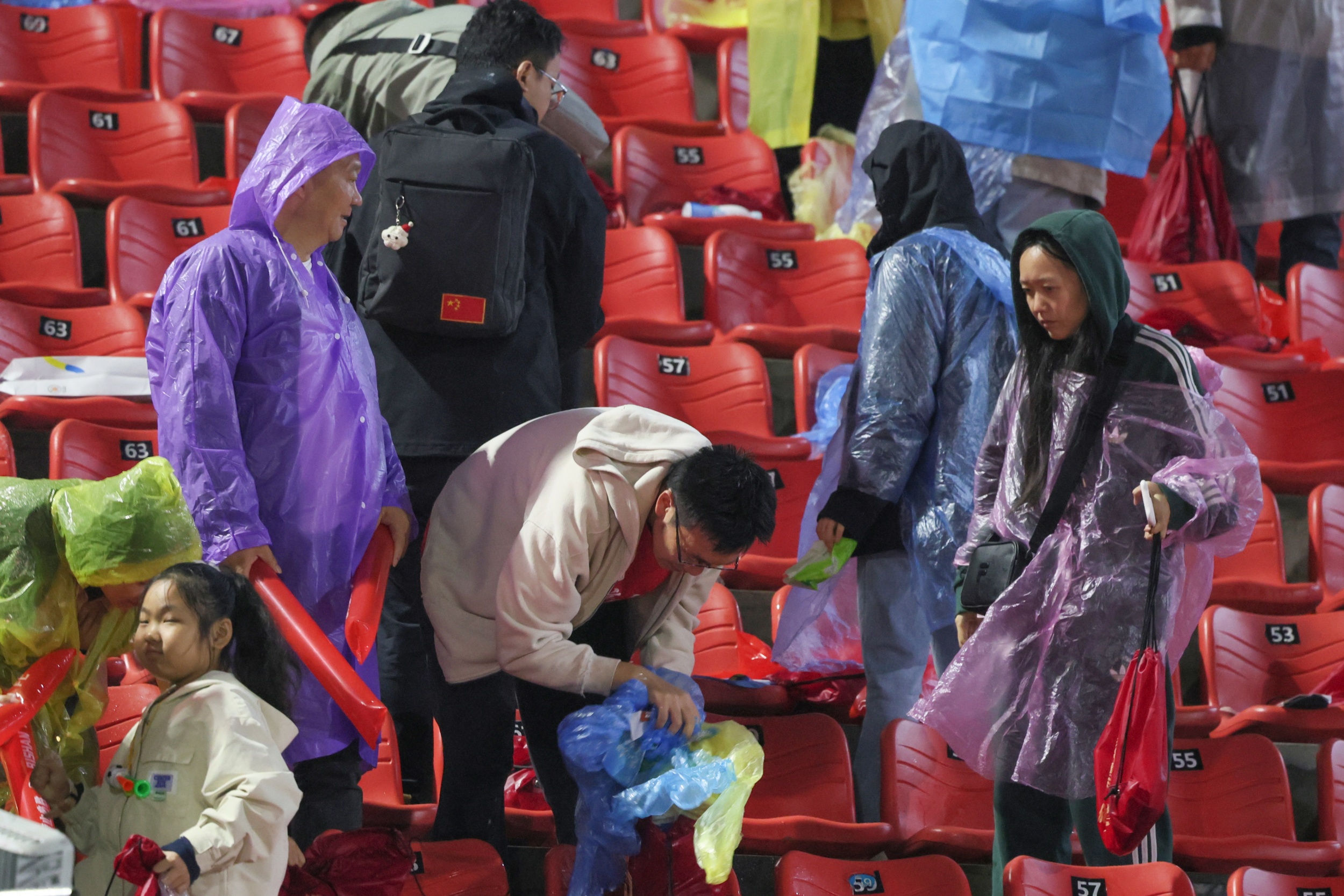 最动人的场景出现在终场哨响后。不等工作人员上前,球迷们便纷纷起身,弯腰捡拾脚边的雨衣、矿泉水瓶、零食包装袋和加油手幅。人群中,球迷李磊正带着6岁的儿子小宇捡垃圾,“球队踢得有风度,我们球迷的素质也不能掉队。”李磊笑着说,“平时社区里总宣传创建全国文明城区,今天带孩子来捡垃圾,就是想让他知道,文明不是别人的事,是我们每个人的责任。”