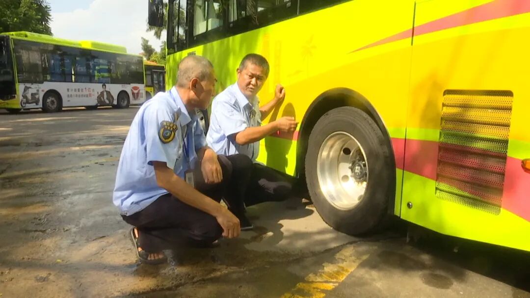 在海口公交世纪公园场站,刘筱杰正在与司机一起,按要求对即将发车的公交车进行检查。每次当班,他都会提前半小时到岗,认真做好车况车容车貌检查、驾驶员酒精检测等工作,把好行车安全关。