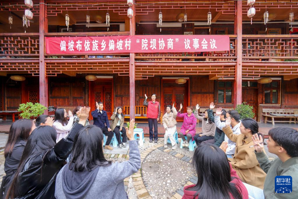 10月27日,村民在贵州省贵阳市乌当区偏坡布依族乡偏坡村农家庭院内议事。新华社发(袁福洪 摄)