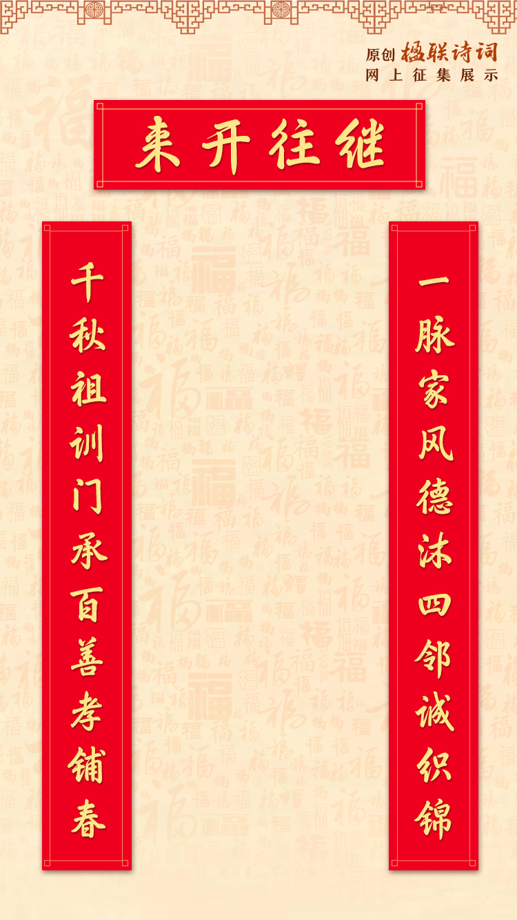 一脉家风德沐四邻诚织锦 千秋祖训门承百善孝铺春 | 楹联-中国文明网